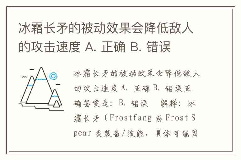 冰霜长矛的被动效果会降低敌人的攻击速度 A. 正确 B. 错误