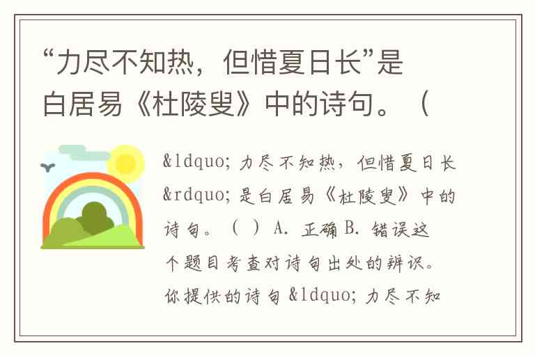 “力尽不知热,但惜夏日长”是白居易《杜陵叟》中的诗句。( ) A. 正确 B. 错误