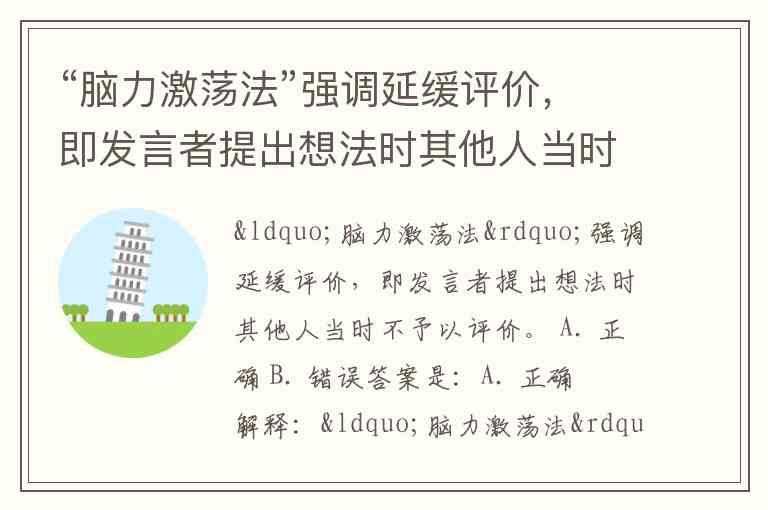 “脑力激荡法”(Brainstorming)是一种常用的创意思维方法,其核心原则之一就是延缓评价。也就是说,当有人提出想法时,其他人不立即批评或评价,而是鼓励自由提出尽可能多的想法,避免因批评而抑制创意的产生。