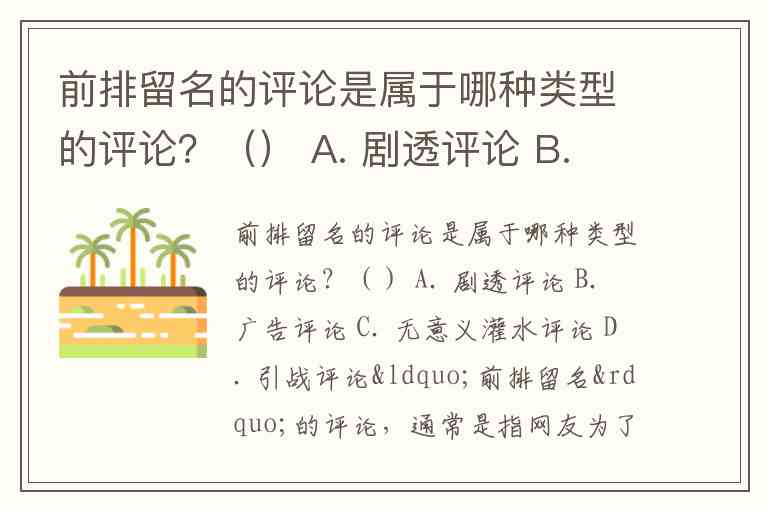 C. 无意义灌水评论 → 指内容空洞、没有实际意义的评论,和“前排留名”最符合。