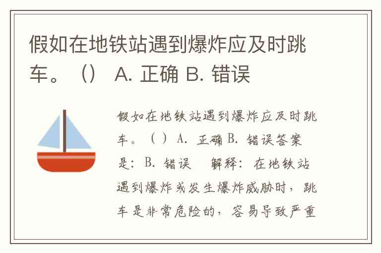 假如在地铁站遇到爆炸应及时跳车。() A. 正确 B. 错误