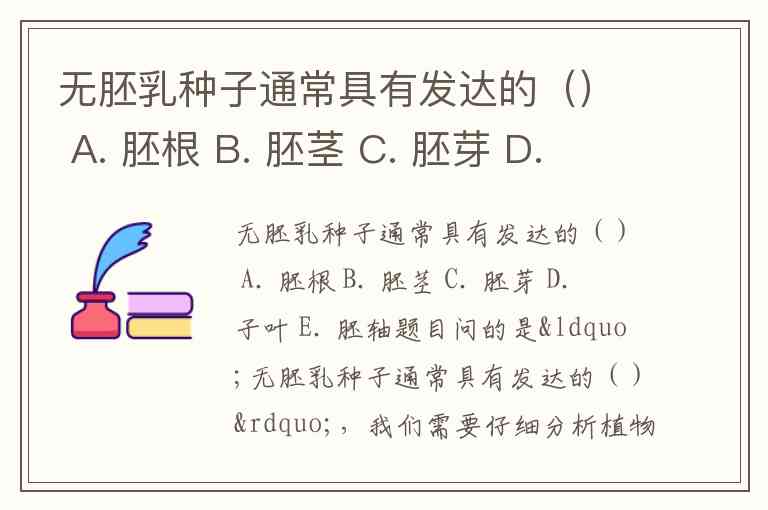 无胚乳种子通常具有发达的() A. 胚根 B. 胚茎 C. 胚芽 D. 子叶 E. 胚轴