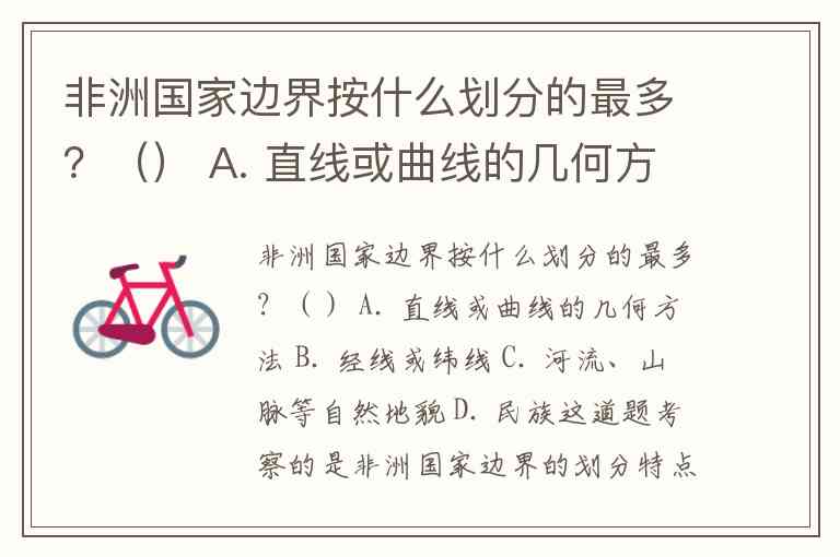 非洲国家边界按什么划分的最多?() A. 直线或曲线的几何方法 B. 经线或纬线 C. 河流、山脉等自然地貌 D. 民族