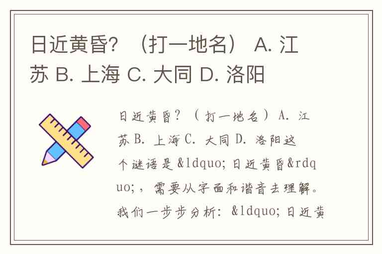 日近黄昏?(打一地名) A. 江苏 B. 上海 C. 大同 D. 洛阳