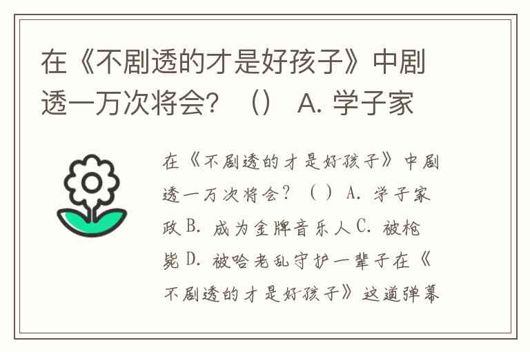 在《不剧透的才是好孩子》中剧透一万次将会?() A. 学子家政 B. 成为金牌音乐人 C. 被枪毙 D. 被哈老乱守护一辈子