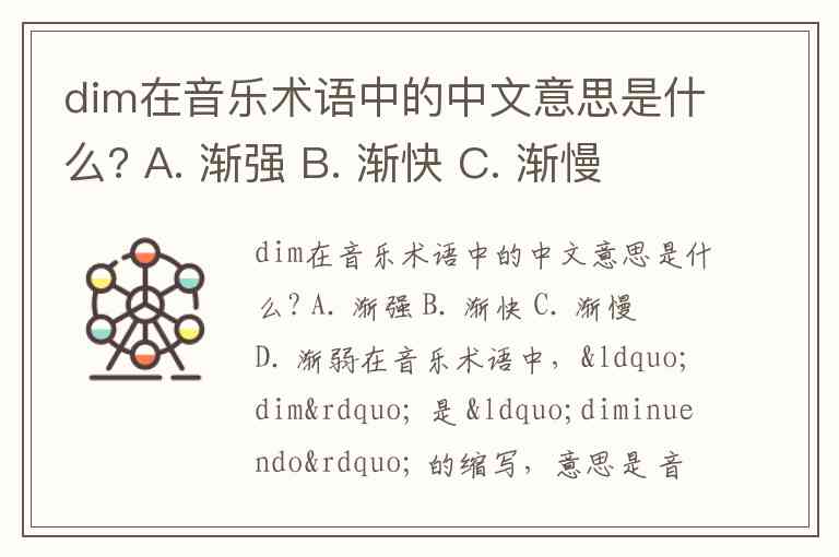 在音乐术语中,“dim” 是 “diminuendo” 的缩写,意思是 音量逐渐变弱。
