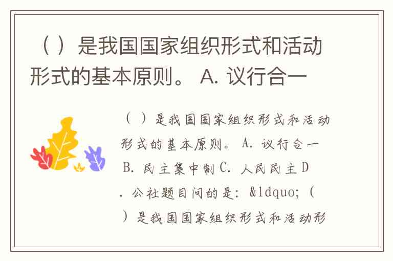 ( )是我国国家组织形式和活动形式的基本原则。 A. 议行合一 B. 民主集中制 C. 人民民主 D. 公社