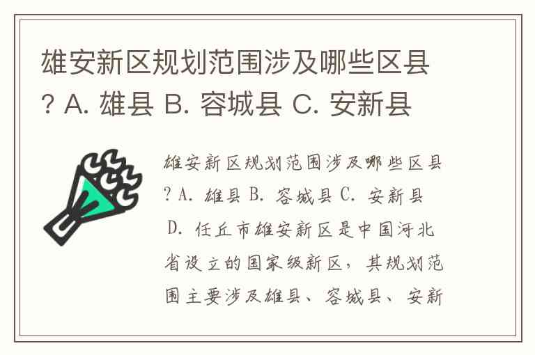 雄安新区是中国河北省设立的国家级新区,其规划范围主要涉及雄县、容城县、安新县三个县。