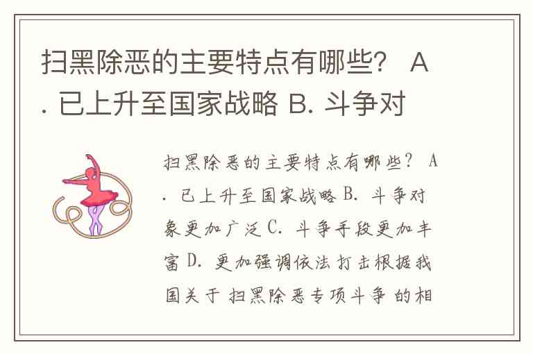 根据我国关于 扫黑除恶专项斗争 的相关政策和文件,其主要特点可以概括为以下几点: