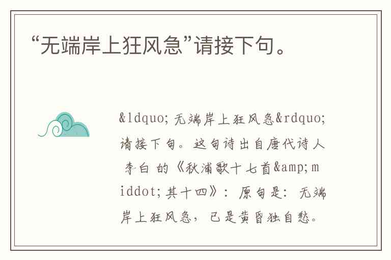 如果你愿意,我可以帮你解析这两句的意境,顺便讲讲李白写作背景。你希望我讲吗?