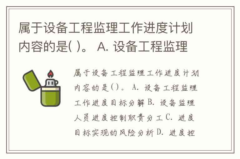 属于设备工程监理工作进度计划内容的是( )。 A. 设备工程监理工作进度目标分解 B. 设备监理人员进度控制职责分工 C. 进度目标实现的风险分析 D. 进度控制目的 E. 尚待解决的有关问题
