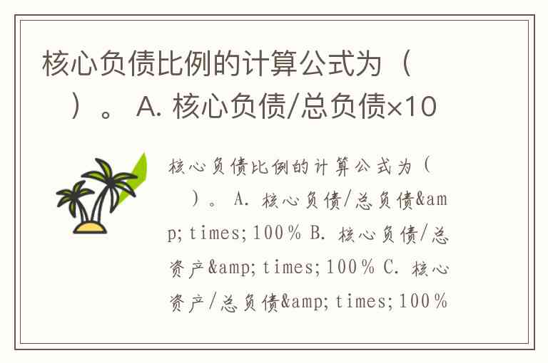 核心负债比例的计算公式为( )。 A. 核心负债/总负债×100% B. 核心负债/总资产×100% C. 核心资产/总负债×100% D. 核心负债/核心资产×100%