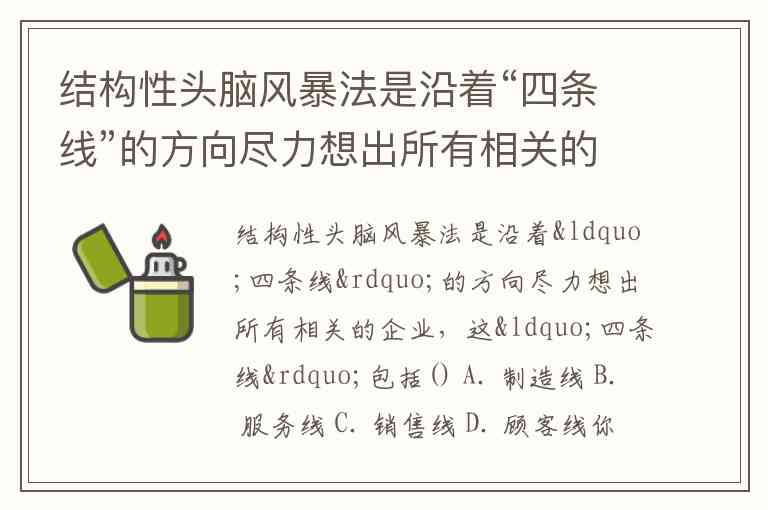 结构性头脑风暴法是沿着“四条线”的方向尽力想出所有相关的企业,这“四条线”包括() A. 制造线 B. 服务线 C. 销售线 D. 顾客线