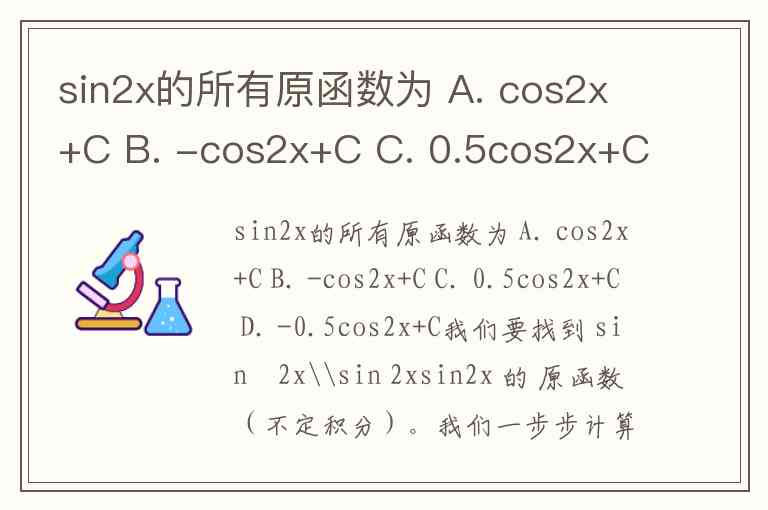 sin2x的所有原函数为 A. cos2x+C B. -cos2x+C C. 0.5cos2x+C D. -0.5cos2x+C