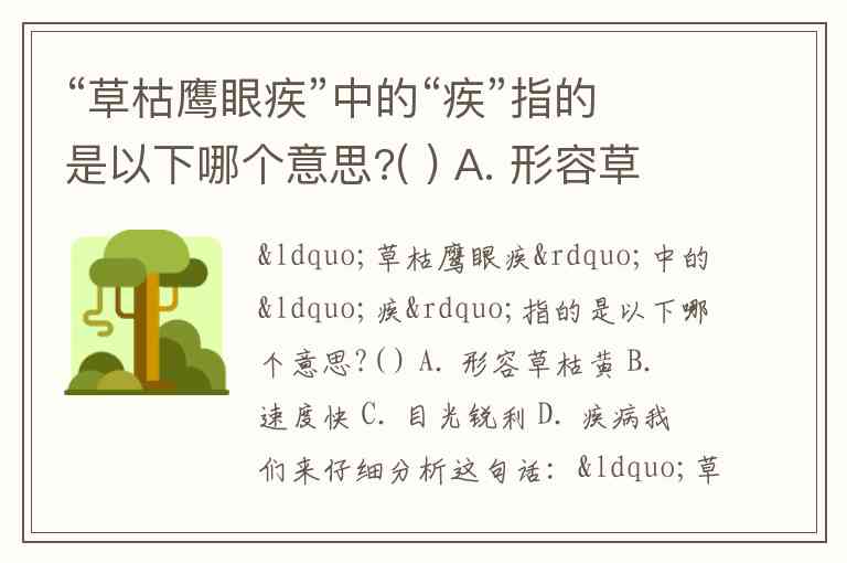 “草枯鹰眼疾”中的“疾”指的是以下哪个意思?( ) A. 形容草枯黄 B. 速度快 C. 目光锐利 D. 疾病