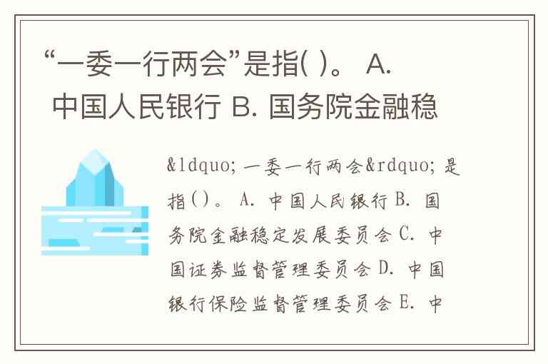 “一委一行两会”是指( )。 A. 中国人民银行 B. 国务院金融稳定发展委员会 C. 中国证券监督管理委员会 D. 中国银行保险监督管理委员会 E. 中国银行业协会