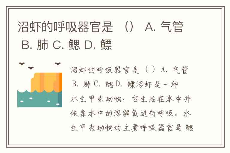 沼虾的呼吸器官是 () A. 气管 B. 肺 C. 鳃 D. 鳔