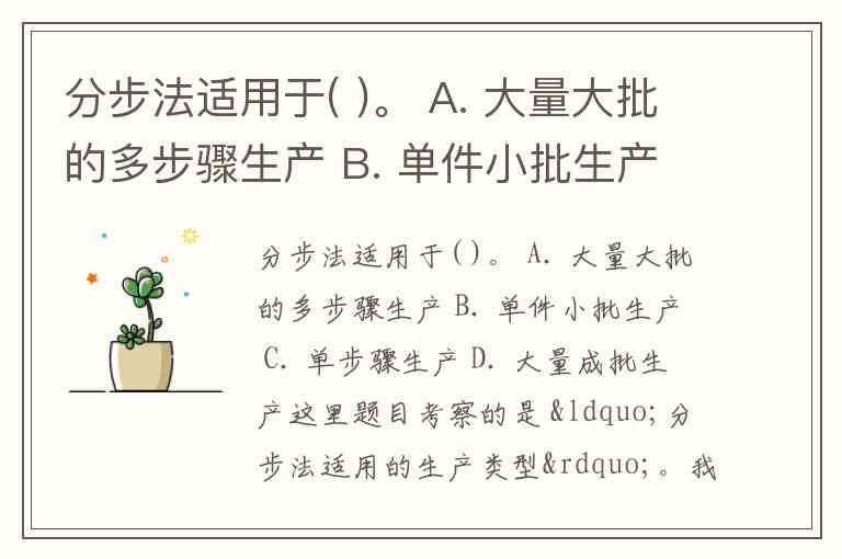 这里题目考察的是 “分步法适用的生产类型”。我们可以一步步分析: