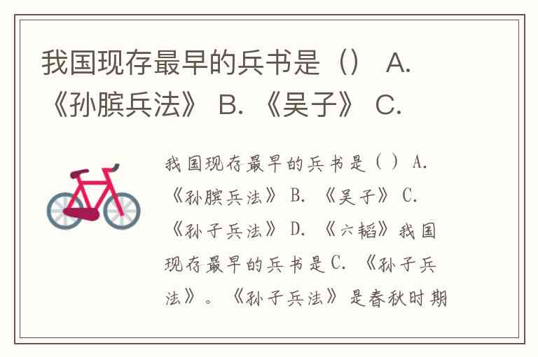 我国现存最早的兵书是() A. 《孙膑兵法》 B. 《吴子》 C. 《孙子兵法》 D. 《六韬》