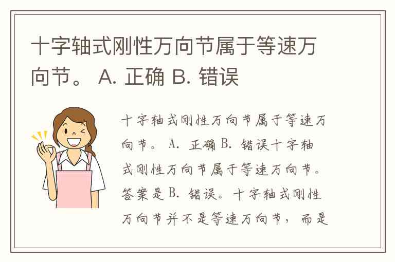 十字轴式刚性万向节属于等速万向节。 A. 正确 B. 错误