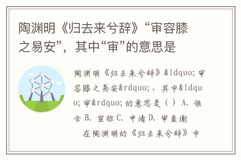 陶渊明《归去来兮辞》“审容膝之易安”,其中“审”的意思是() A. 领会 B. 宣称 C. 申请 D. 审查谢朓