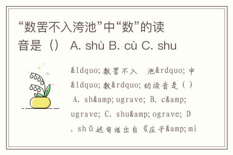 “数罟不入洿池”中“数”的读音是() A. shù B. cù C. shuò D. shǔ