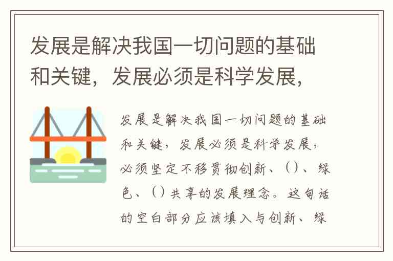 发展是解决我国一切问题的基础和关键,发展必须是科学发展,必须坚定不移贯彻创新、( )、绿色、( )共享的发展理念。
