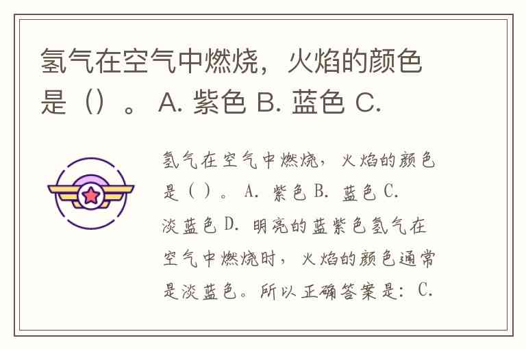 氢气在空气中燃烧,火焰的颜色是()。 A. 紫色 B. 蓝色 C. 淡蓝色 D. 明亮的蓝紫色