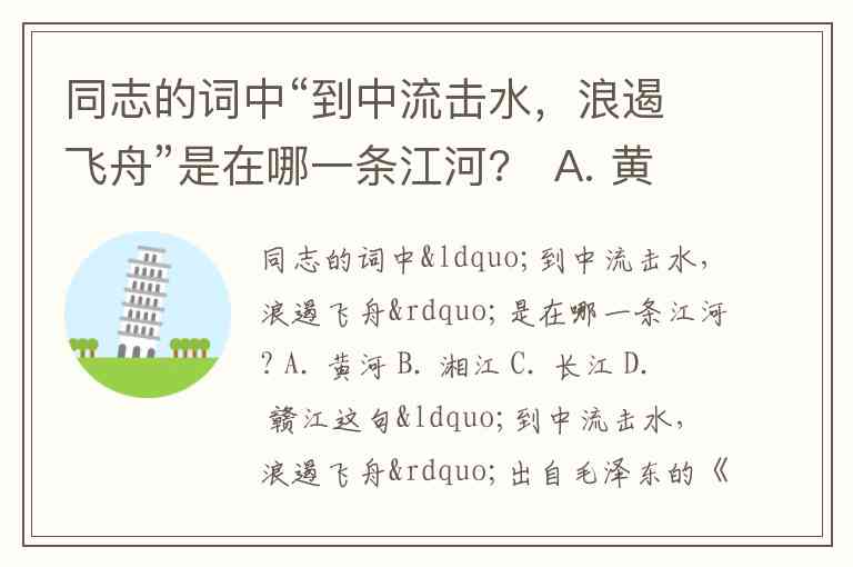 同志的词中“到中流击水,浪遏飞舟”是在哪一条江河? A. 黄河 B. 湘江 C. 长江 D. 赣江