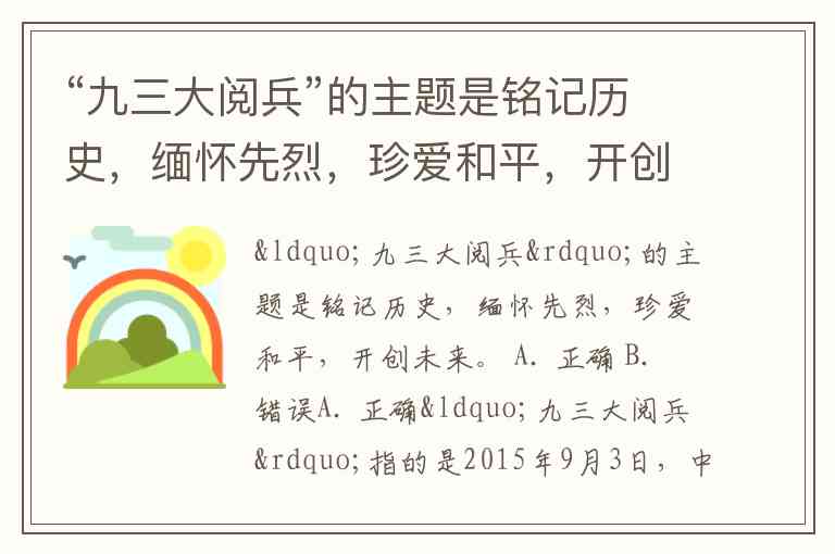 “九三大阅兵”指的是2015年9月3日,中国举行的纪念抗日战争胜利70周年的阅兵式。其主题确实是铭记历史、缅怀先烈、珍爱和平、开创未来。