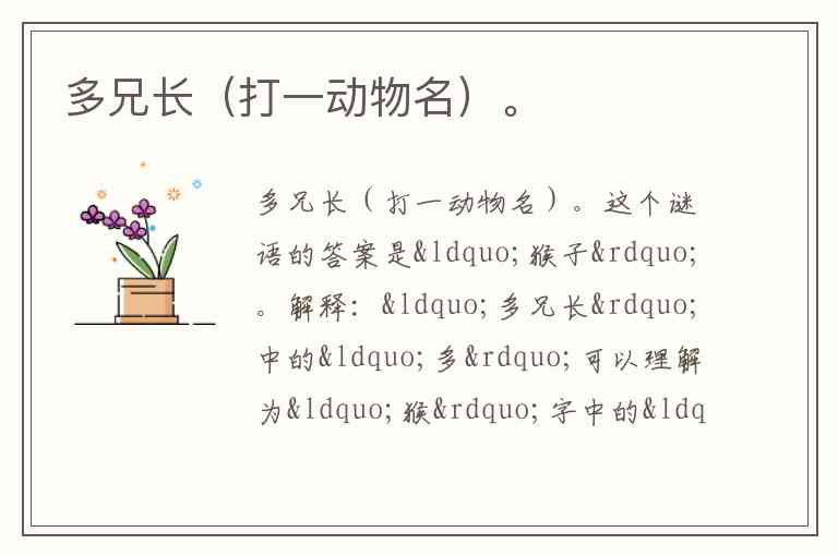 解释:“多兄长”中的“多”可以理解为“猴”字中的“众”,也可以理解为猴子一般生活在群体中,且猴子有很强的社会性。结合“兄长”,意思可以指猴群中的年长或者领导者。
