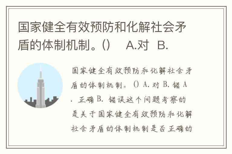 国家健全有效预防和化解社会矛盾的体制机制。() A.对 B.错 A. 正确 B. 错误