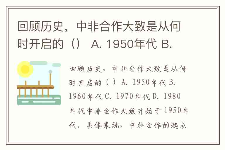 回顾历史,中非合作大致是从何时开启的() A. 1950年代 B. 1960年代 C. 1970年代 D. 1980年代