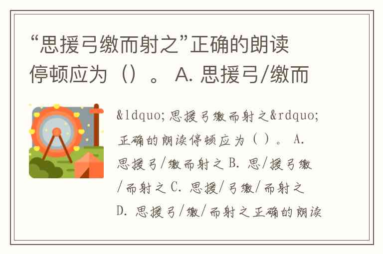 “思援弓缴而射之”正确的朗读停顿应为()。 A. 思援弓/缴而射之 B. 思/援弓缴/而射之 C. 思援/弓缴/而射之 D. 思援弓/缴/而射之