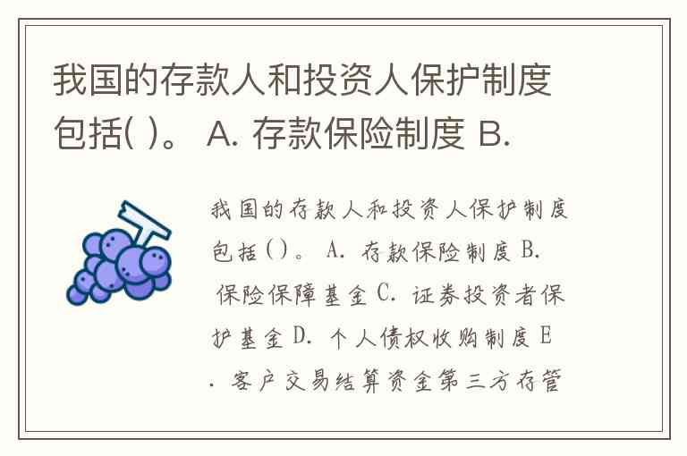 我国的存款人和投资人保护制度包括( )。 A. 存款保险制度 B. 保险保障基金 C. 证券投资者保护基金 D. 个人债权收购制度 E. 客户交易结算资金第三方存管制度