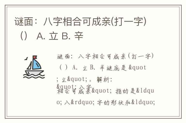 谜面:八字相合可成亲(打一字)() A. 立 B. 辛