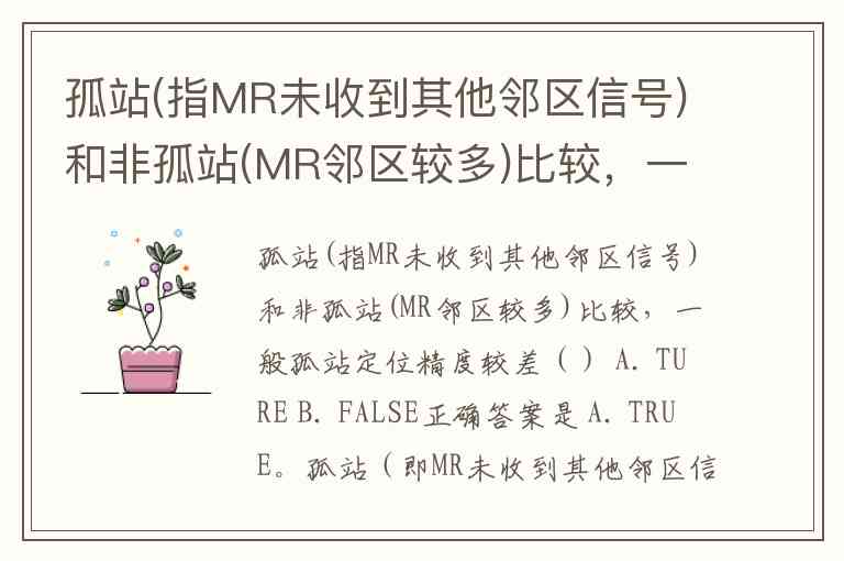 孤站(指MR未收到其他邻区信号)和非孤站(MR邻区较多)比较,一般孤站定位精度较差() A. TURE B. FALSE