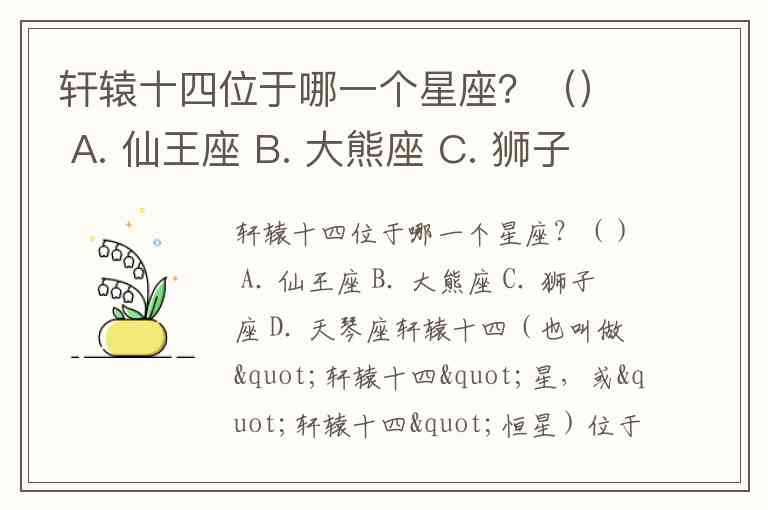 轩辕十四位于哪一个星座?() A. 仙王座 B. 大熊座 C. 狮子座 D. 天琴座