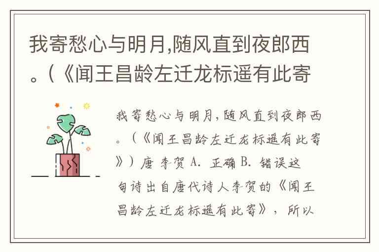 我寄愁心与明月,随风直到夜郎西。(《闻王昌龄左迁龙标遥有此寄》) 唐 李贺 A. 正确 B. 错误