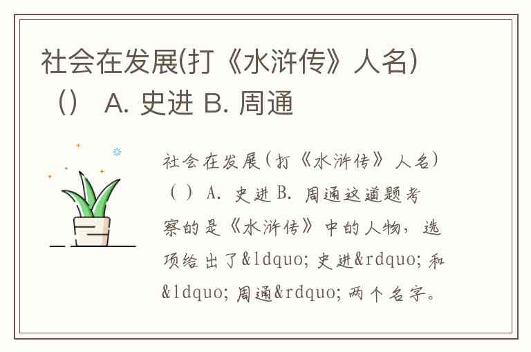 社会在发展(打《水浒传》人名)() A. 史进 B. 周通