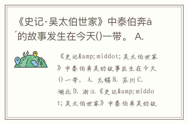 《史记·吴太伯世家》中泰伯奔吴的故事发生在今天()一带。 A. 无锡 B. 苏州 C. 湖北 D. 浙江