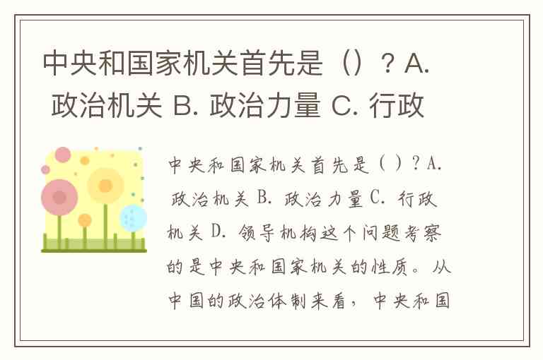 中央和国家机关首先是()? A. 政治机关 B. 政治力量 C. 行政机关 D. 领导机构