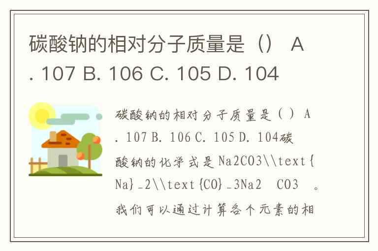 碳酸钠的相对分子质量是() A. 107 B. 106 C. 105 D. 104