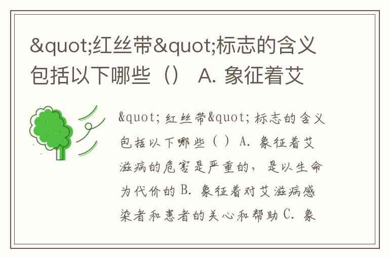"红丝带"标志的含义包括以下哪些() A. 象征着艾滋病的危害是严重的,是以生命为代价的 B. 象征着对艾滋病感染者和患者的关心和帮助 C. 象征着对生命的热爱、对平等的渴望 D. 象征着我们用心和真情来参与艾滋病防治工作