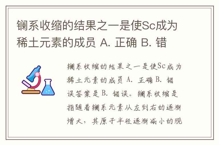 镧系收缩是指随着镧系元素从左到右的逐渐增大,其原子半径逐渐减小的现象。这种现象会导致元素的化学性质发生变化,但它并不使钪(Sc)成为稀土元素的成员。钪(Sc)本身并不属于稀土元素,稀土元素一般是指镧系元素(La到Lu)及其类似元素(如镱和钪)。