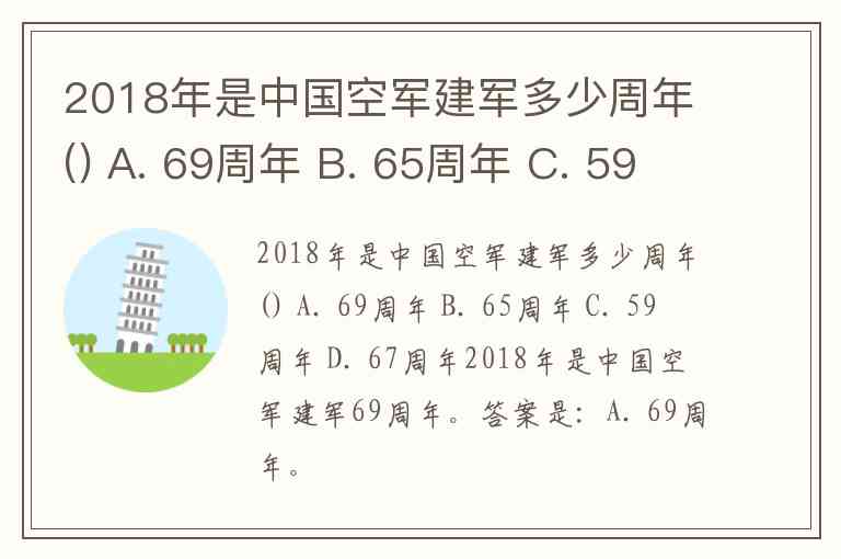 2018年是中国空军建军多少周年() A. 69周年 B. 65周年 C. 59周年 D. 67周年