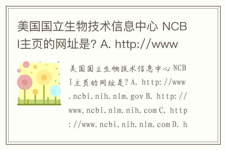 美国国立生物技术信息中心(NCBI)的主页网址是: