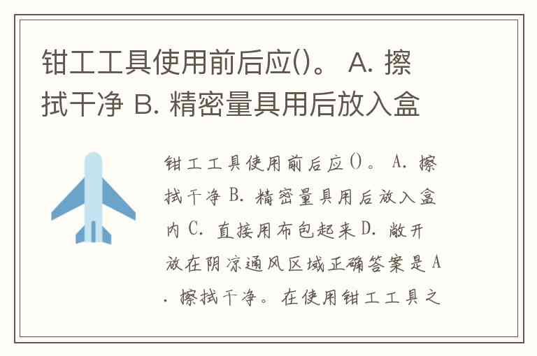 钳工工具使用前后应()。 A. 擦拭干净 B. 精密量具用后放入盒内 C. 直接用布包起来 D. 敞开放在阴凉通风区域