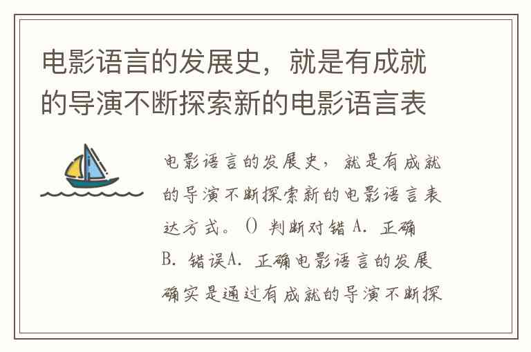 电影语言的发展史,就是有成就的导演不断探索新的电影语言表达方式。() 判断对错 A. 正确 B. 错误