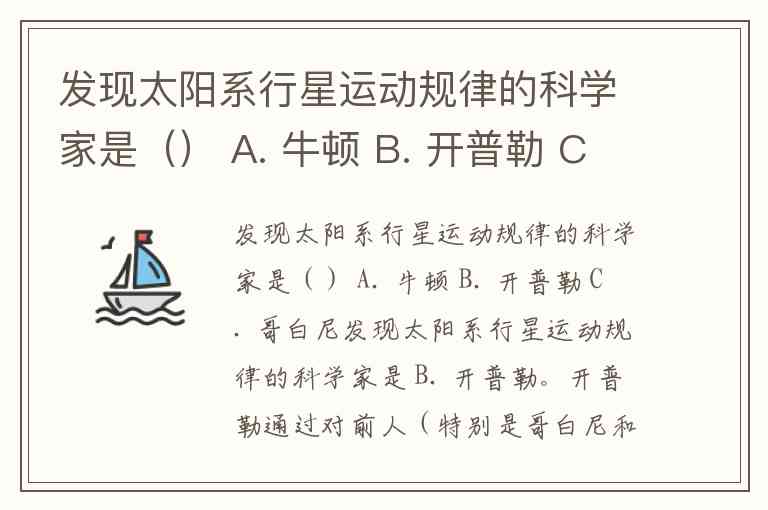发现太阳系行星运动规律的科学家是() A. 牛顿 B. 开普勒 C. 哥白尼